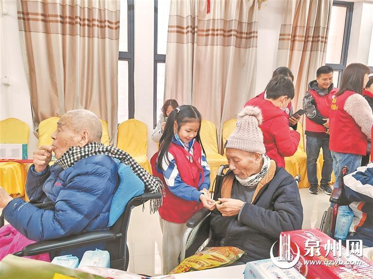 歲末寒冬送關愛,愛心助老迎新春。1月31日上午,泉州市東南公益協會攜手泉州市立成小學2022級2班的同學們走進晉江池店霞福幸福敬老院,開展“暖冬行 愛傳遞”敬老主題活動,為敬老院的老人們送去八寶粥、面包、麥片、水果等愛心物資。讓老人們更加歡喜的是,這群可愛的孩子們還為他們準備了精彩的文藝節目,歡聲笑語充滿整個敬老院。