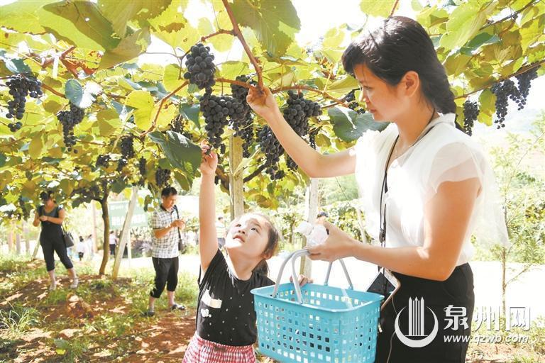 金秋時節,德化縣湯頭鄉福山村的葡萄園里,陣陣果香撲鼻而來。作為福建省最大的野生刺葡萄種植基地和富硒釀酒葡萄基地,2000多畝的土地上,黑珍珠般的刺葡萄綴滿藤蔓。慕名而來的游客提著果籃,穿梭在綠油油的葡萄藤下,將紫黑色的葡萄納入籃中。