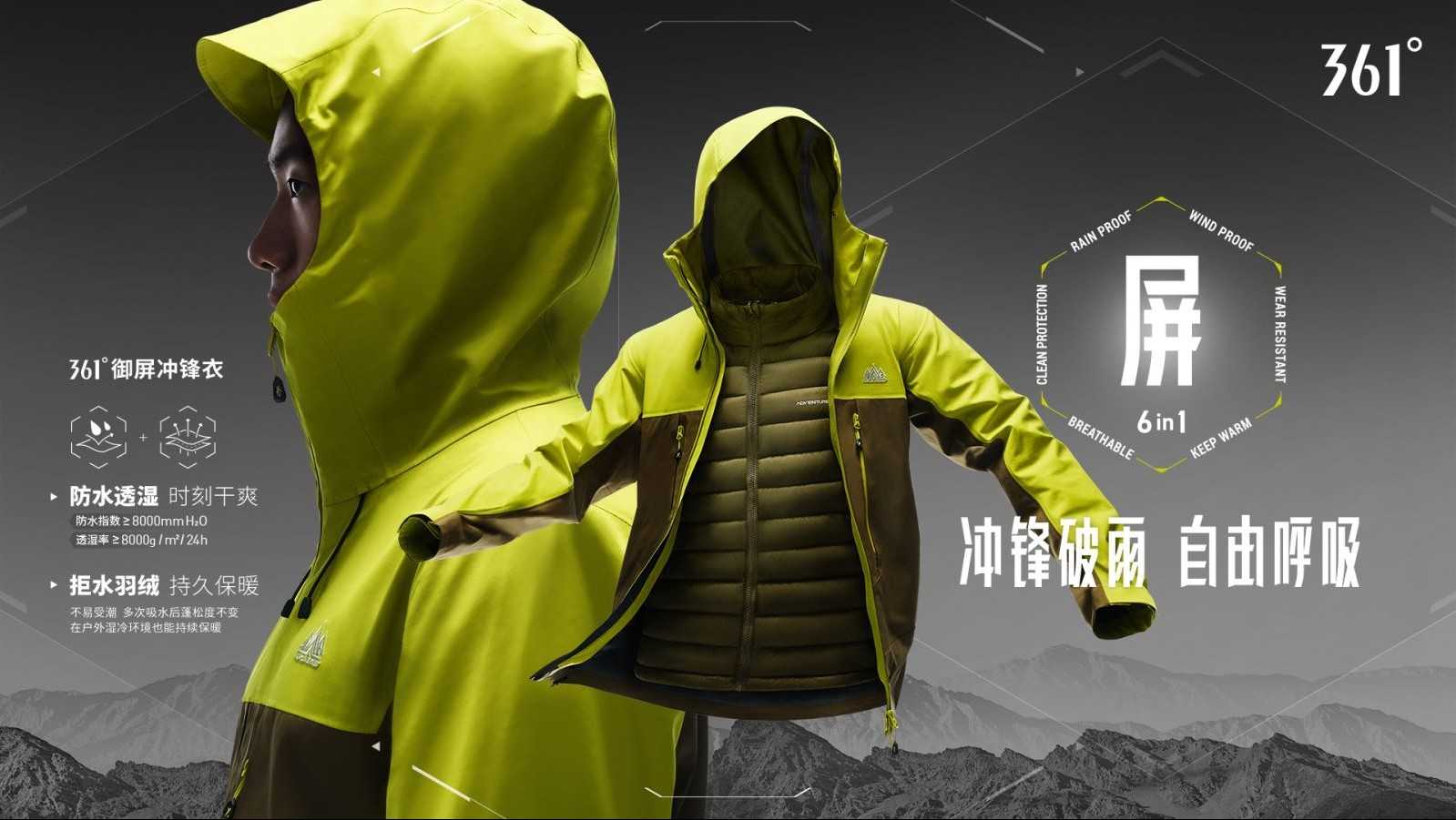 劉秋華提到,戶外運動面對的場景及天氣非常多元化,因此對產品裝備的功能性和專業性要求更高。361°御屏2.0沖鋒衣,依托屏科技平臺技術達到了防水8000mm H?O、透濕率8000G/㎡/24H的優秀指標,無懼戶外多元天氣變化;除此之外,還有防風、防污、耐磨等多重屏科技平臺技術疊加。在屏科技的加持下,御屏2.0沖鋒衣真正做到了6屏合一、全面防護,成為沖鋒衣中的“六邊形戰士”。