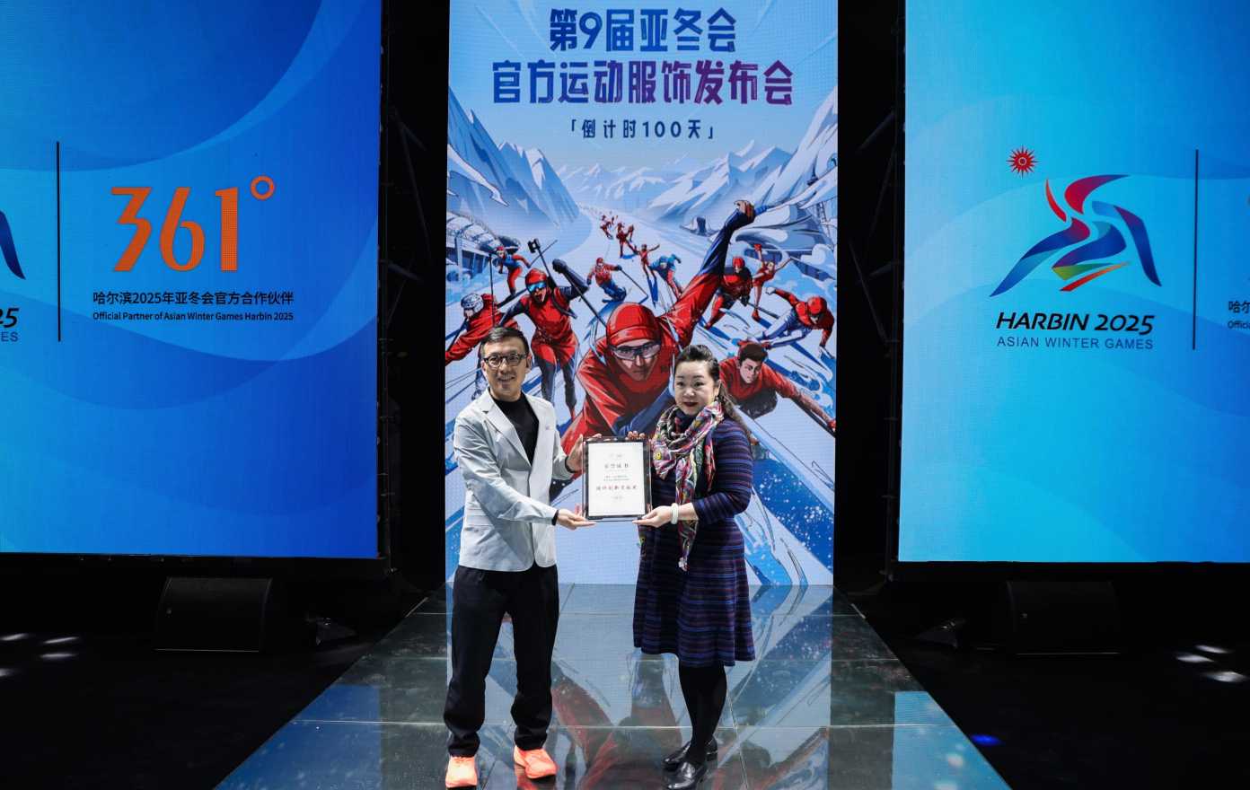 2024年10月31日,在哈爾濱2025年第九屆亞洲冬季運動會開幕倒計時100天之際,官方合作伙伴361°在哈爾濱舉行了官方運動服飾發布會。哈爾濱市人大常委會副主任,亞冬會組委會副秘書長、亞冬會執委會副主任王鐵立,哈爾濱2025年第九屆亞冬會執委會市場開發部部長許冰、副部長史俊煜,北京服裝學院校黨委常委、宣傳部部長兼服裝藝術與工程學院黨委書記張宏娜,361°品牌管理中心總經理鄭業欣,361°服裝產品中心總經理劉秋華等嘉賓親臨現場,共同見證這一重要時刻。