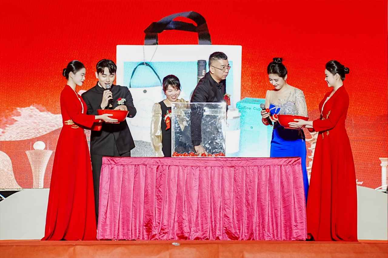 點燈環節更是將喜多多的喜文化理念與婚典的喜慶氛圍完美融合,許慶純董事長與在場領導共同點燃喜多多“囍”燈籠,祝愿新人婚后生活喜氣盈盈,幸福美滿,和和美美。
