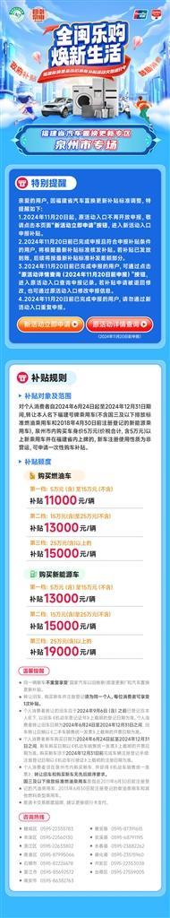 記者從泉州市商務局了解到,11月20日起,原汽車置換更新活動入口不再開放申報,新活動申報入口同日上線。消費者可登錄云閃付,點擊福建省汽車置換更新專區“泉州市專場”的“新活動立即申請”按鈕,進入新活動入口申報補貼。