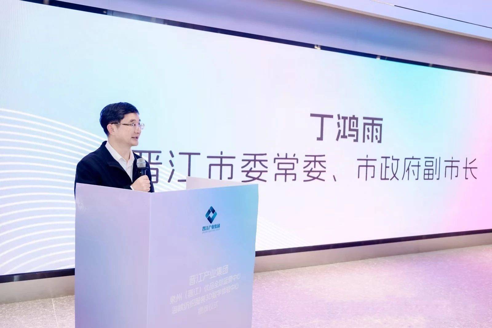 (晉江優品項目和3D數字化項目揭牌儀式上,晉江市委常委、晉江市政府副市長丁鴻雨致辭)