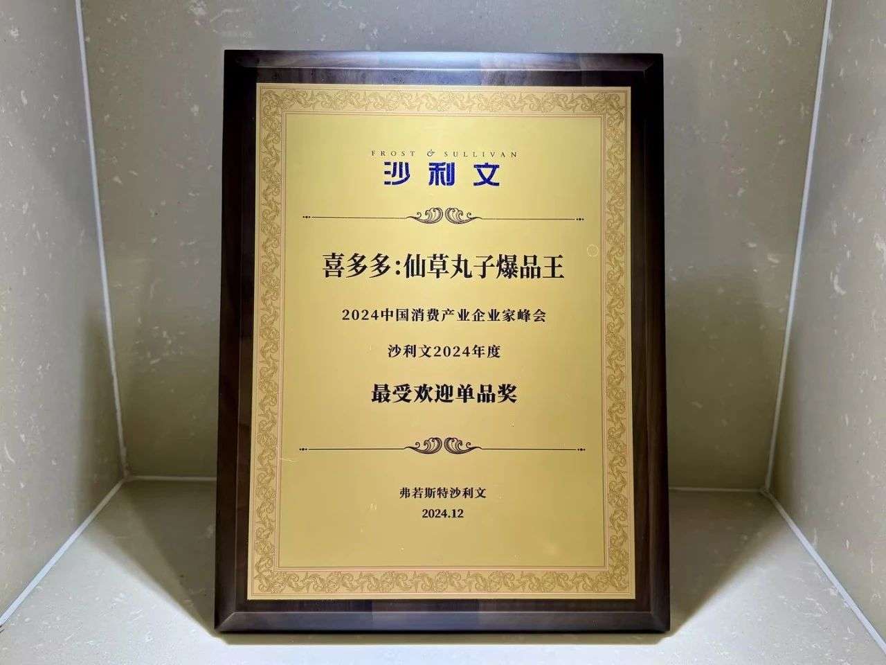 在2024中國消費(fèi)產(chǎn)業(yè)企業(yè)家峰會上,喜多多的明星產(chǎn)品“仙草丸子”榮獲沙利文2024年度最受歡迎單品獎。