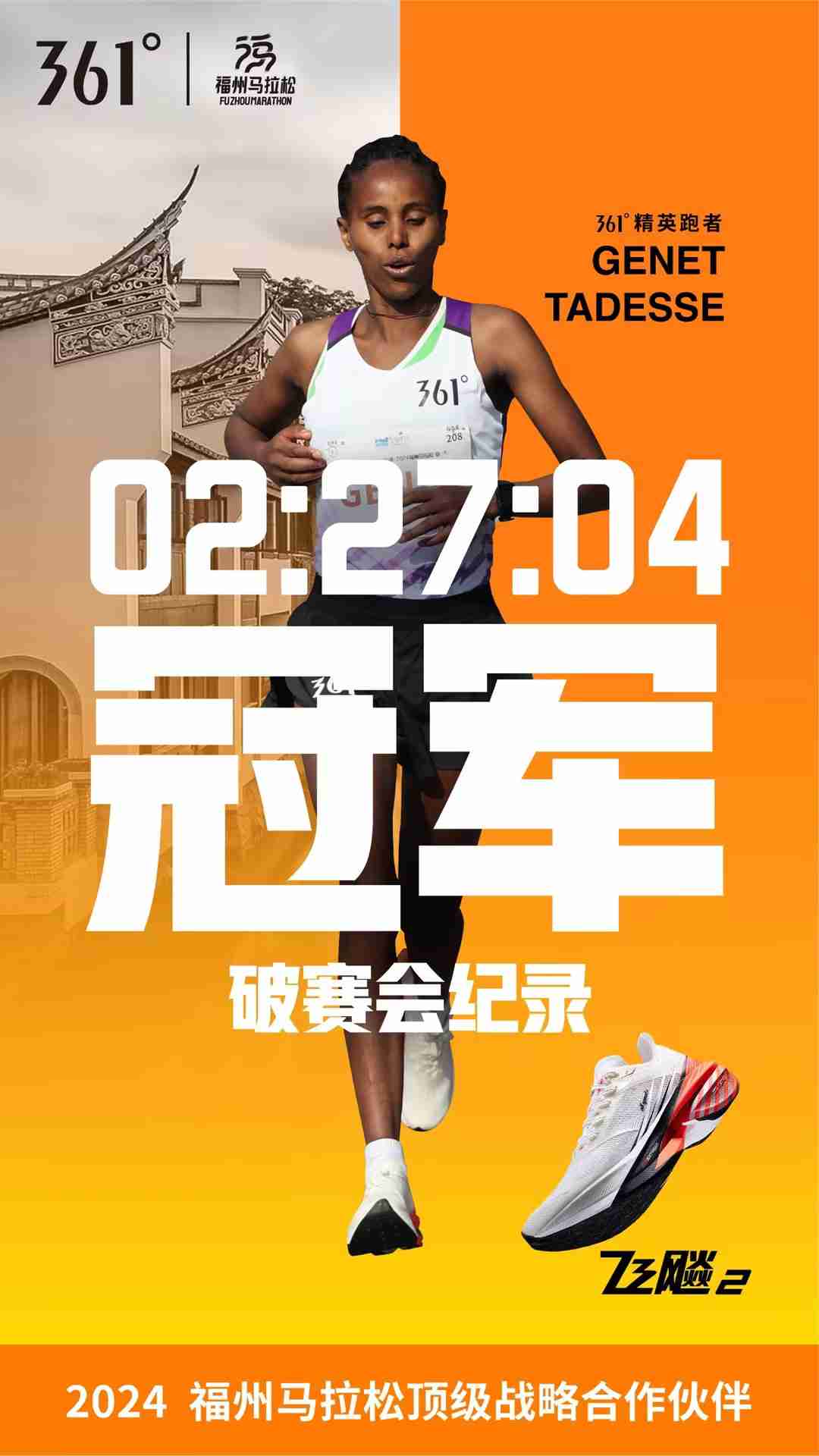 在跑步領域,361°作為頂級戰略合作伙伴先后贊助福州馬拉松及莆田馬拉松,以優秀的產品和專業的賽事服務助力跑者賽道逐夢,持續推動中國路跑事業發展。賽場上,361°精英跑者ABDU ENDRIS與GENET TADESSE包攬2024福州馬拉松男女子冠軍,GENET TADESSE更是以2:27:04的成績打破女子賽會紀錄,同時,361°品牌代言人李子成也獲得了男子組亞軍、國內冠軍的優異成績。此外,361°品牌日新品發布暨三號賽道10KM競速系列賽總決賽在廣州成功舉辦,匯聚了361°品牌代言人李子成、跑步代言人管油勝、李波等精英跑者,現場發布包括飛燃4、速湃FLOAT 2在內的多款新品,完善了361°專業競速跑鞋的矩陣,展現出361°對材料創新、設計理念和產品科技的深入探索。