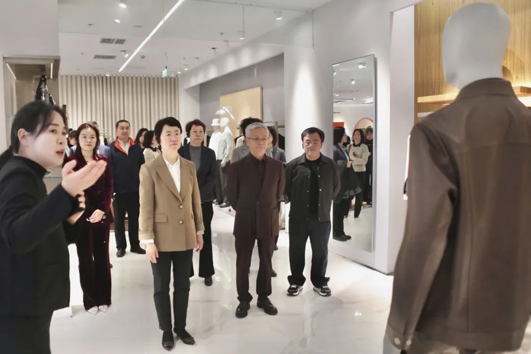 在民建金山區(qū)委會員、勁霸男裝(上海)有限公司董事長洪忠信,CEO洪伯明陪同下,解冬一行走進勁霸茄克實驗室聽取勁霸依托科技賦能實現(xiàn)研發(fā)創(chuàng)新和品質提升的成果介紹,沿著企業(yè)文化長廊了解勁霸45年三代傳承的創(chuàng)業(yè)歷程和公司總部遷駐上海15年來取得的發(fā)展成績,前往勁霸品牌集合店和黨群服務中心,感受勁霸融合東方美學的產品設計和堅持“紅色是最美的時尚”初心。當?shù)弥獎虐砸呀洶舜蔚顷懨滋m時裝周官方日程,在國際時尚舞臺展現(xiàn)民族品牌風采時,解冬給予充分肯定。解冬表示,上海是全球消費資源聚集地,服裝不僅是重要的民生用品,同時也是助力上海打造國際消費中心城市、擦亮“上海購物”品牌的重要支撐。解冬希望,企業(yè)要繼續(xù)加強技術創(chuàng)新,主動踐行綠色、環(huán)保、可持續(xù)的發(fā)展理念;要結合市場需求,持續(xù)優(yōu)化產品設計,提升優(yōu)質產品供給,創(chuàng)新消費場景;要對標國際時尚品牌,勇敢走出去展示風采并參與競爭,努力打造國際一流品牌。