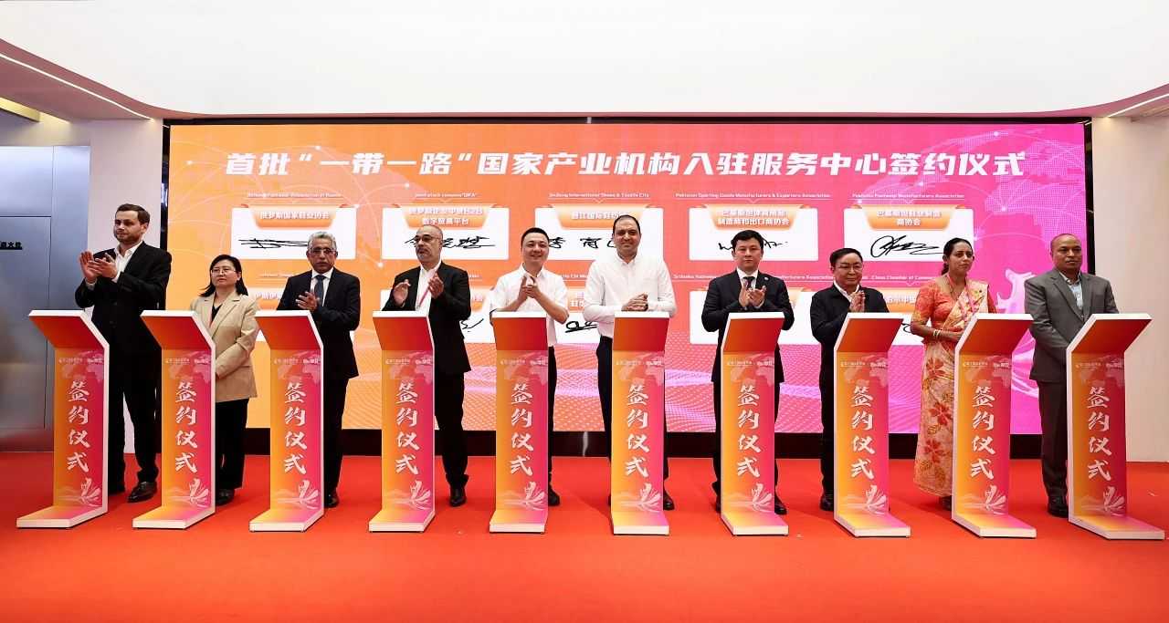 現場舉行了首批共建“一帶一路”國家產業機構入駐服務中心簽約儀式,這標志著來自世界各地的行業組織正式入駐晉江鞋紡城國際采購服務體系,為雙方構建長效合作關系、共促貿易暢通奠定基礎。這些合作組織來自俄羅斯、巴基斯坦、烏茲別克斯坦、伊朗、尼泊爾、越南、斯里蘭卡等國家。