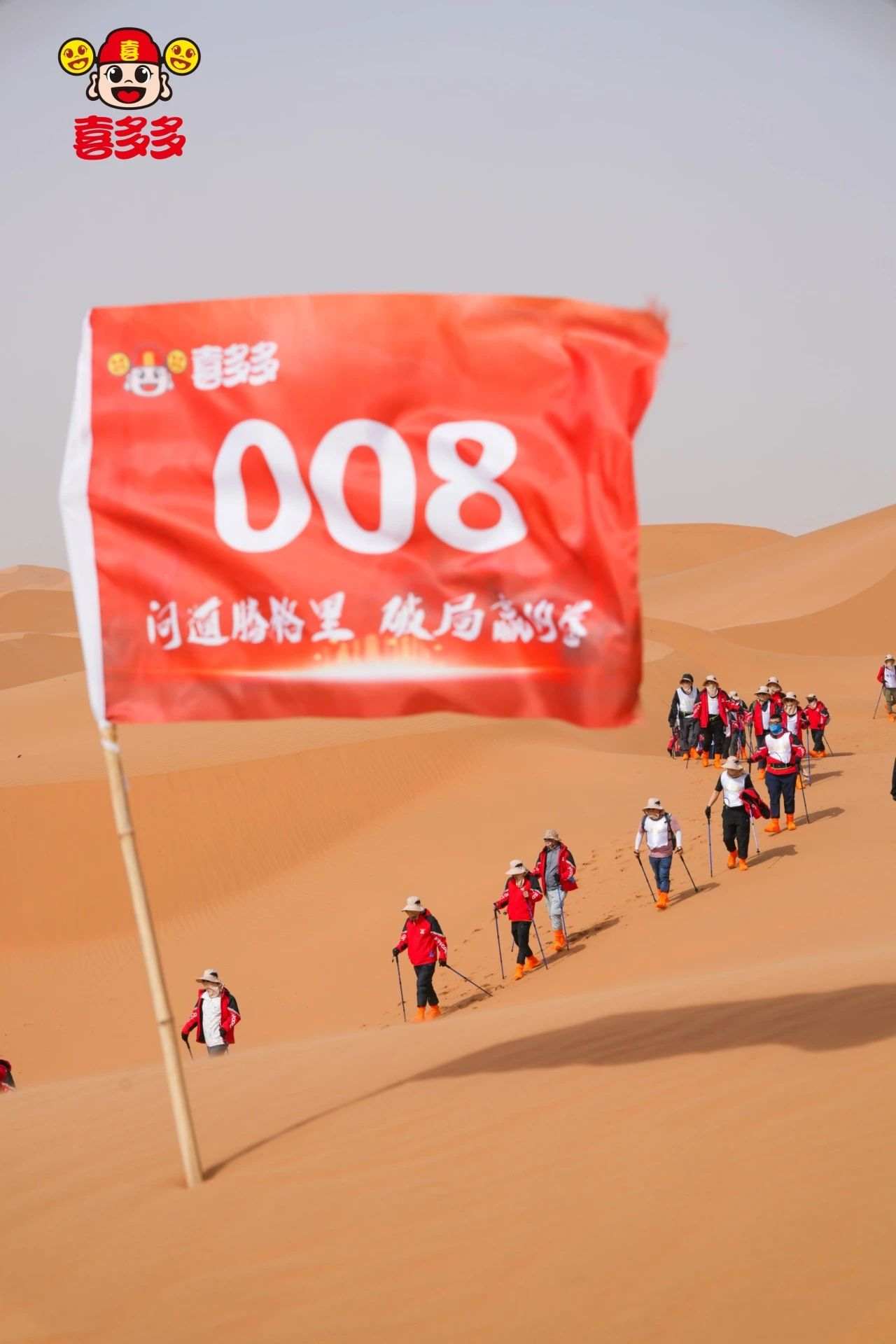 沙漠中的每一步,都是對喜多多28年創業路的重溫。在激烈的市場競爭中,唯有攜手同行,才能“收復失地”,再創輝煌!這不僅是對過去的回顧,更是對未來的期許。喜多多戰隊用腳步丈量沙漠的脊梁,每一步都深深烙印在沙漠之中,也在這過程中探尋著突破困境的方法,重拾繼續前行的勇氣。
