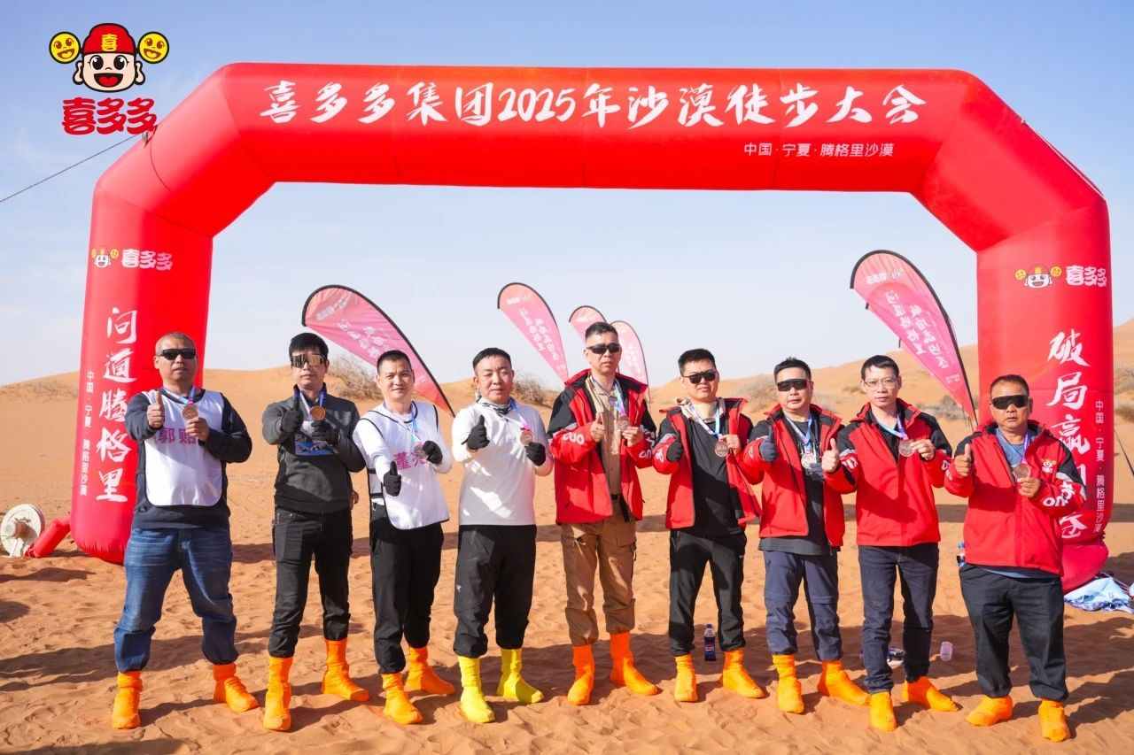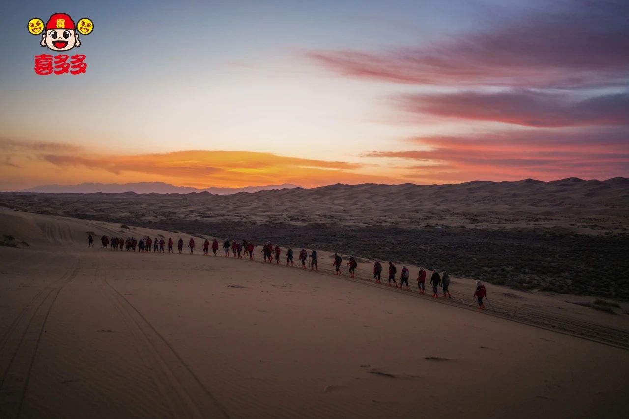 4月21日,喜多多攜手眾多經銷商齊聚內蒙古阿拉善盟的騰格里沙漠,成功舉辦以“問道騰格里,破局贏內卷” 為主題的2025年沙漠徒步大會。這場為期三天兩夜的沙漠徒步活動,不僅是一次挑戰自我的征程,更是一次凝聚團隊力量、探尋破局之策的深度探索。