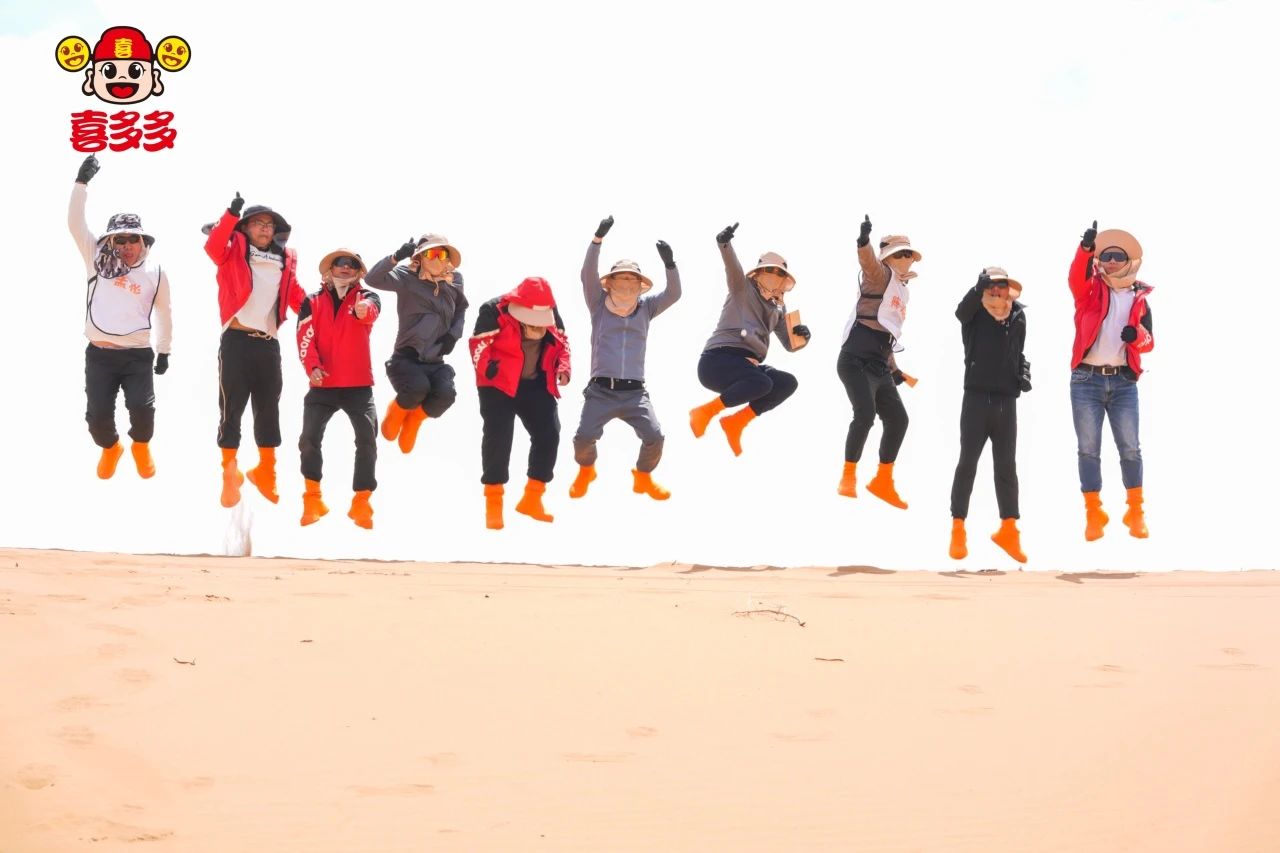 風沙磨礪意志,足跡書寫傳奇。商海如戈壁,唯有以信任為杖、以擔當為泉,方能在波譎云詭的市場競爭中“破繭成蝶”。今日的風沙,是成長的洗禮;明日的輝煌,是奮斗的果實。在騰格里沙漠的見證下,我們已經邁出了破局的關鍵一步;在未來的征程中,我們將用汗水與智慧,書寫屬于喜多多的傳奇,向著星辰大海,向著勝利的彼岸,揚帆遠航,實現共贏發展!