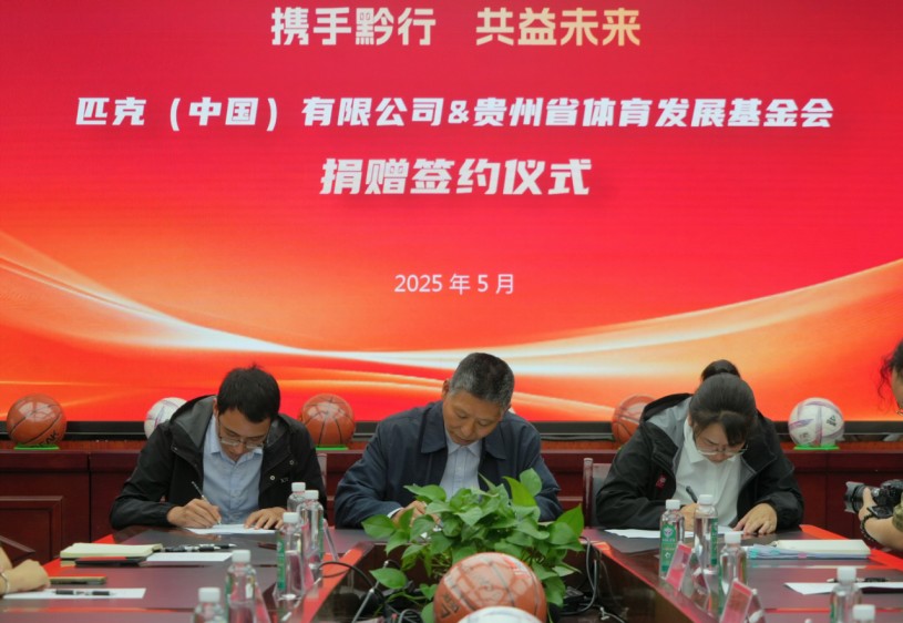 儀式上,匹克(中國)有限公司代表冉文祥向貴州省體育發(fā)展基金會捐贈1800個籃球、1000個足球,總價值33萬元。貴州省體育發(fā)展基金會代表鞠科接受捐贈并回贈紀念牌匾。隨后,匹克(中國)有限公司、貴州青年志愿服務基金會、貴州省體育發(fā)展基金會現(xiàn)場簽署了捐贈協(xié)議。