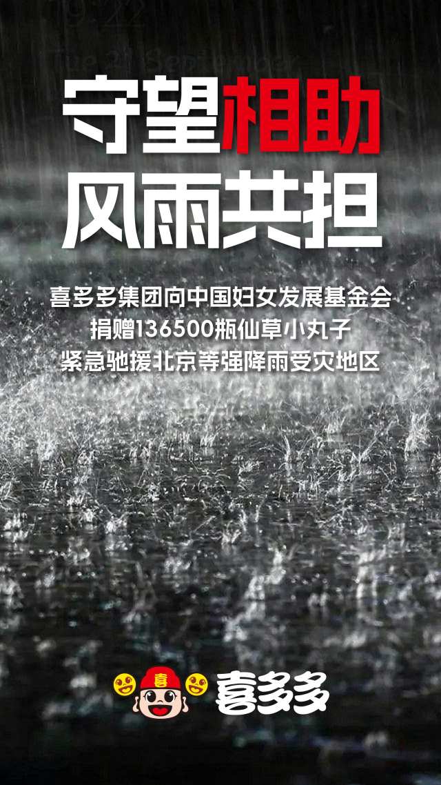 面對突如其來的極端天氣,喜多多第一時間啟動應急援助機制,聯合中國婦女發展基金會,將136500瓶仙草小丸子送往北京等強降雨受災地區。仙草小丸子為災區群眾及一線救援人員提供及時的能量補給,用于當地居民過渡階段的生活保障,助力抗災工作順利開展。