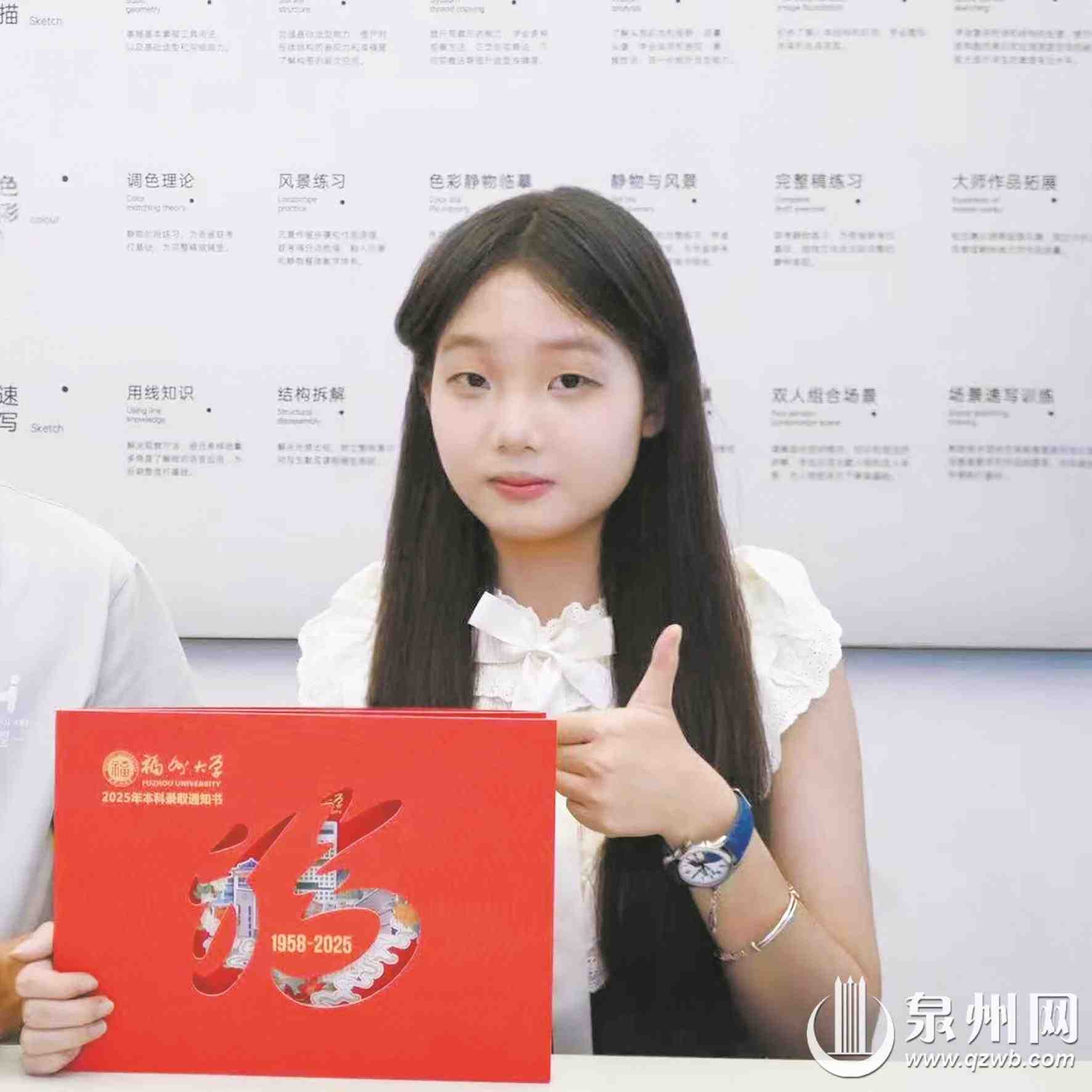 泉州九中畢業(yè)生林知之以藝術(shù)生的身份成功考入福州大學(xué)設(shè)計(jì)學(xué)專業(yè)。“福大一直是我的理想院校之一。”她笑著說道,“收到錄取通知書時(shí),雖然早有心理準(zhǔn)備,但那份喜悅依然溢于言表,父母也為我由衷驕傲。”談及對未來的規(guī)劃,這位準(zhǔn)大學(xué)生飽含期待:“我希望在大學(xué)這個(gè)新環(huán)境中,在專業(yè)能力上獲得突破,以后在熱愛的設(shè)計(jì)領(lǐng)域綻放光彩,同時(shí)始終保持對藝術(shù)的純粹初心。”特別讓她心動(dòng)的是該錄取通知書的設(shè)計(jì)巧思,“封面那個(gè)精致的鏤空書法‘福’字獨(dú)具匠心,透過它可以看到內(nèi)頁的精美圖案,這樣的設(shè)計(jì)細(xì)節(jié)完全戳中了我們藝術(shù)生的審美點(diǎn)。”她說。