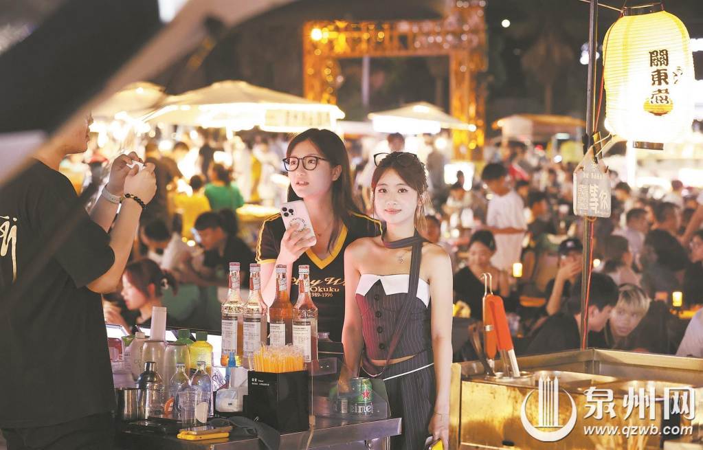 夜幕降臨,熱氣稍減,夜間經濟隨之活躍。古城街區燈火通明,文創店、手工藝品店里游客眾多,精心挑選紀念品。夜市中,小吃攤位被食客層層圍住,燒烤的煙火氣與冰飲的清涼感交織,構成了獨特的夜晚風情。