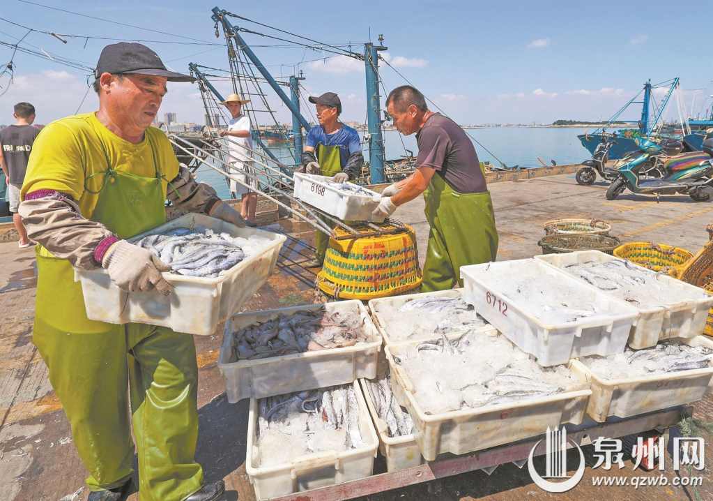 開(kāi)漁季,隨著首批漁船滿(mǎn)載而歸,沉寂三個(gè)半月的石獅祥芝國(guó)家中心漁港又熱鬧起來(lái)。石獅漁民迎來(lái)“開(kāi)門(mén)紅”,馬鮫魚(yú)、梭子蟹、明蝦等生猛海鮮讓早市沸騰。接下來(lái)幾天,更多大漁船將陸續(xù)完成“第一網(wǎng)”捕撈作業(yè),各種“蝦兵蟹將”會(huì)源源不斷地運(yùn)回,市場(chǎng)上海鮮的價(jià)格也將逐步走低,開(kāi)漁“第一鮮”將陸續(xù)擺上市民的餐桌。