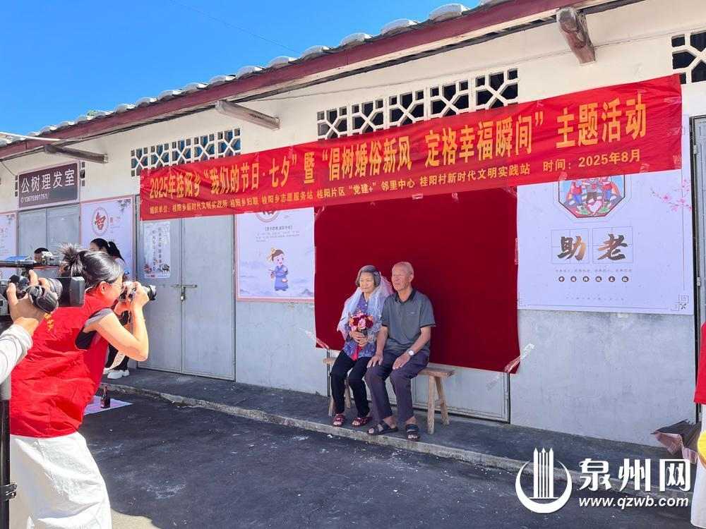化上精致的妝容,披上潔白的頭紗,手捧絢爛的鮮花,銀齡夫妻在鏡頭前綻放出幸福的笑容,補(bǔ)拍著他們的“結(jié)婚照”。8月26日,在七夕來臨之際,德化縣桂陽鄉(xiāng)新時(shí)代文明實(shí)踐所攜手桂陽鄉(xiāng)志愿服務(wù)隊(duì)、婦聯(lián)及桂陽片區(qū)“黨建+”鄰里中心等,精心策劃并舉辦了“我們的節(jié)日·七夕”暨“倡樹婚俗新風(fēng) 定格幸福瞬間”系列主題活動(dòng)。活動(dòng)現(xiàn)場(chǎng),多對(duì)老年夫妻在鏡頭前綻放笑容,溫馨的畫面令人動(dòng)容,吸引了眾多村民參與,整個(gè)現(xiàn)場(chǎng)洋溢著濃厚的節(jié)日氛圍與文明新風(fēng)。
