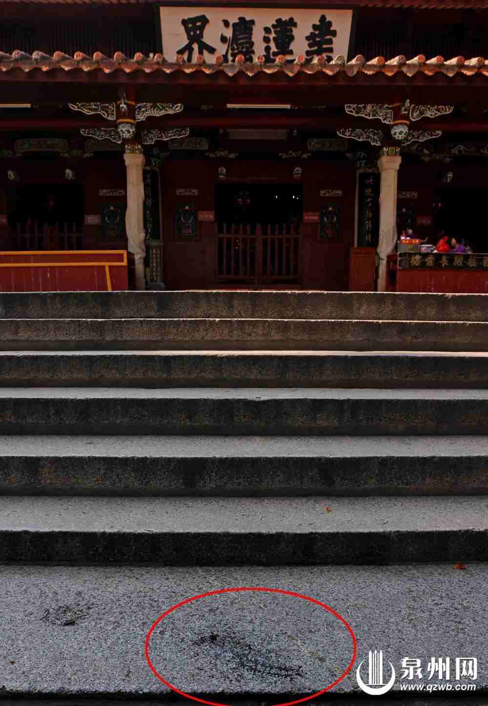 這只蜈蚣刻得很細,頭尾觸須清晰,獨個兒趴在石階上,旁邊啥也沒有。關于它的來歷,有個傳說:鄭成功的父親鄭芝龍為保佑兒子出海,聽高僧指點,在大雄寶殿重建時埋了兩只蜈蚣鎮邪。但問遍寺里師父和泉州學者,都沒在書上見過相關記載。而另一個說法則來自寺中僧人,據說當年大雄寶殿重修,上梁總也上不去。有人說寺址在“蛇穴位”,得刻只蜈蚣鎮住。結果上梁真成了——當然,這也只是老一輩的傳說,沒有文字記錄。