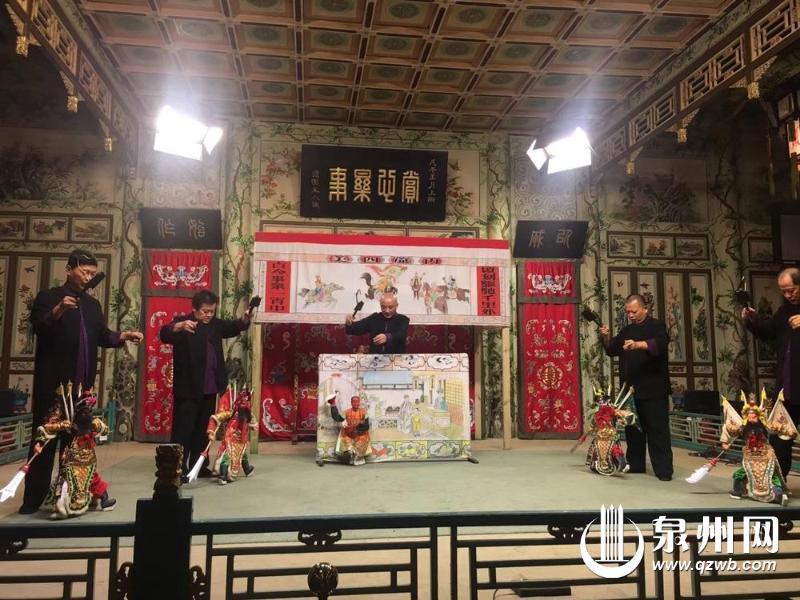 泉州傀儡戲《目連救母》復排保存計劃實施中,演員們復排演出,現場全程錄制音像。