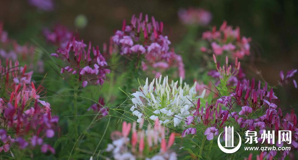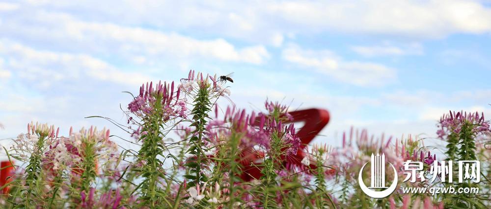 放眼望去,粉的、紫的、白的醉蝶花交織在一起,與遠處的大海和藍天相映成趣,宛如一幅絢麗多彩的油畫……這是泉州市區濱海公園新一季的花海——醉蝶花已如期盛放,期待您的到來!