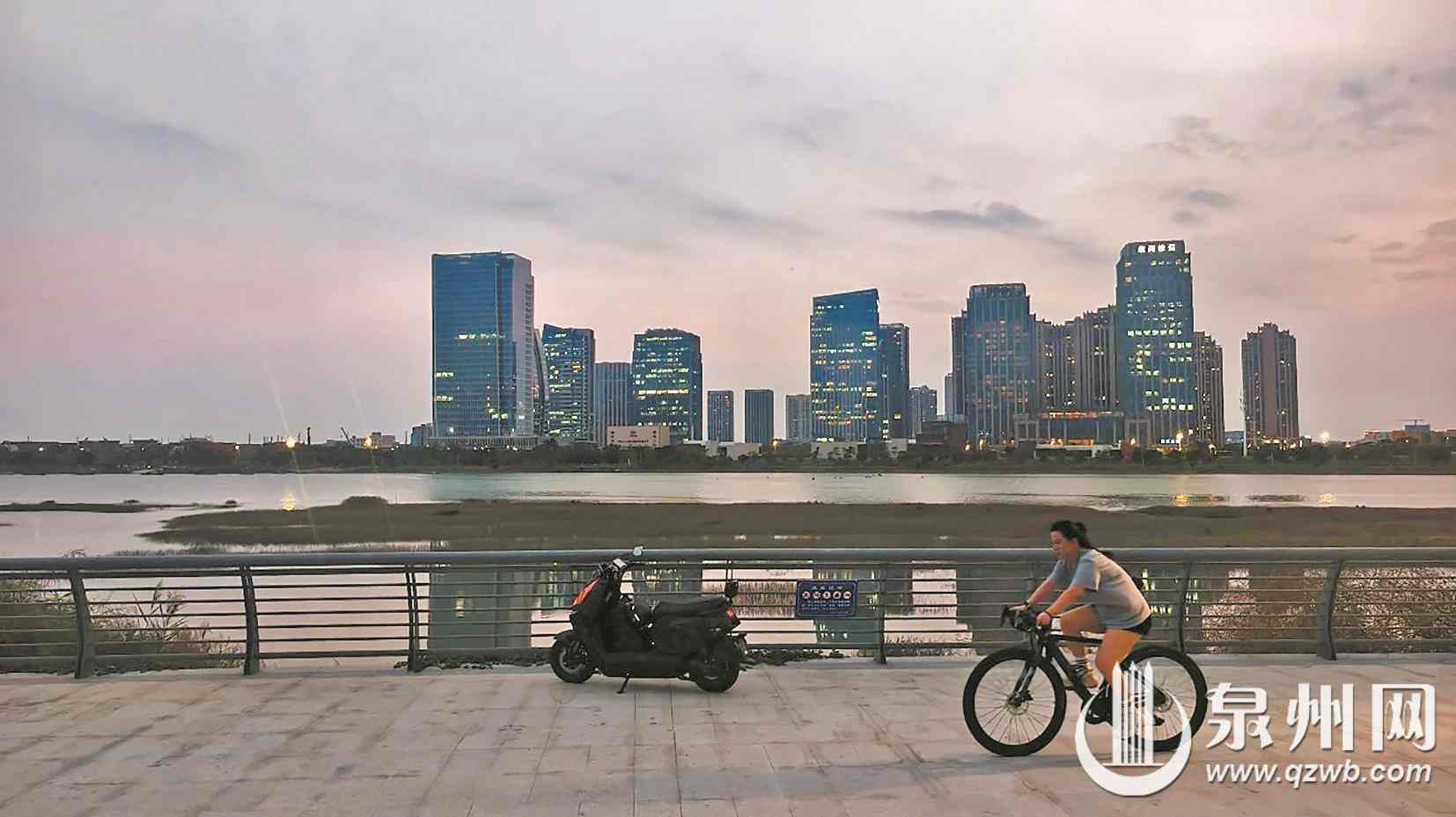 昨天傍晚,趁著雨后的涼意,市民來到江濱公園騎行鍛煉。(麗祥/攝)