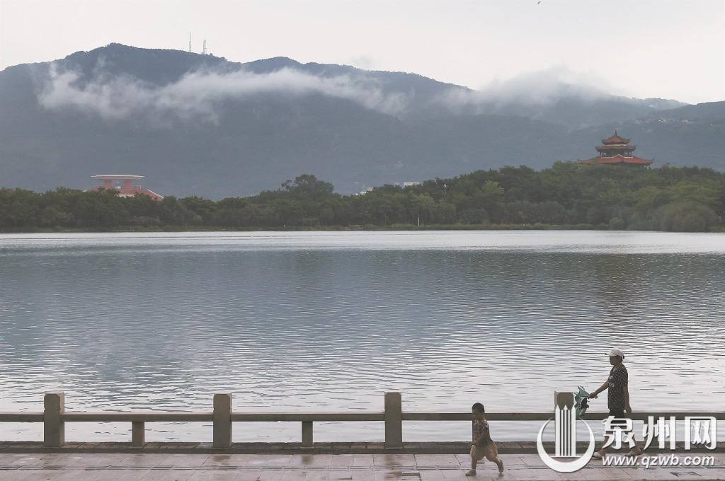 昨日,雨后的泉州西湖,涼風一掃悶熱,給散步的市民帶來一絲清爽。(王柏峰/攝)