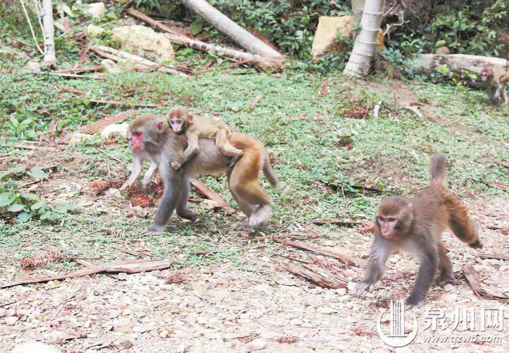 據曾華東介紹,這群猴子是獼猴,最早出現在20世紀80年代,一開始只有十幾只。由于唐寨山森林公園山高林密,生態環境好,且獼猴是國家二級重點保護野生動物,大家保護意識高,又有部分游客會投喂食物,這里成了猴子理想的棲息地。此前,德化縣林業部門曾抓走兩批,放生到其他地方,經過繁衍,如今西天寺附近還棲息著一百多只猴子。