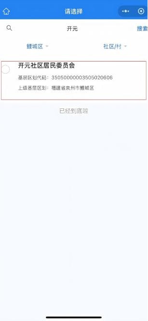 2.按要求填寫基本信息(帶*項(xiàng)為必填項(xiàng)),點(diǎn)擊【基層醫(yī)保區(qū)劃名稱】,選擇參保縣(市、區(qū)),再選擇社區(qū)/村,或通過【搜索欄】填入社區(qū)/村名稱。如戶籍在“鯉城區(qū)開元社區(qū)”,首先在“泉州市”一欄選擇“鯉城區(qū)”,再從“搜索欄”輸入“開元”進(jìn)行搜索,或者從“社區(qū)/村”中選擇“開元社區(qū)居民委員會”,完成信息填寫并按要求上傳材料保存即可。