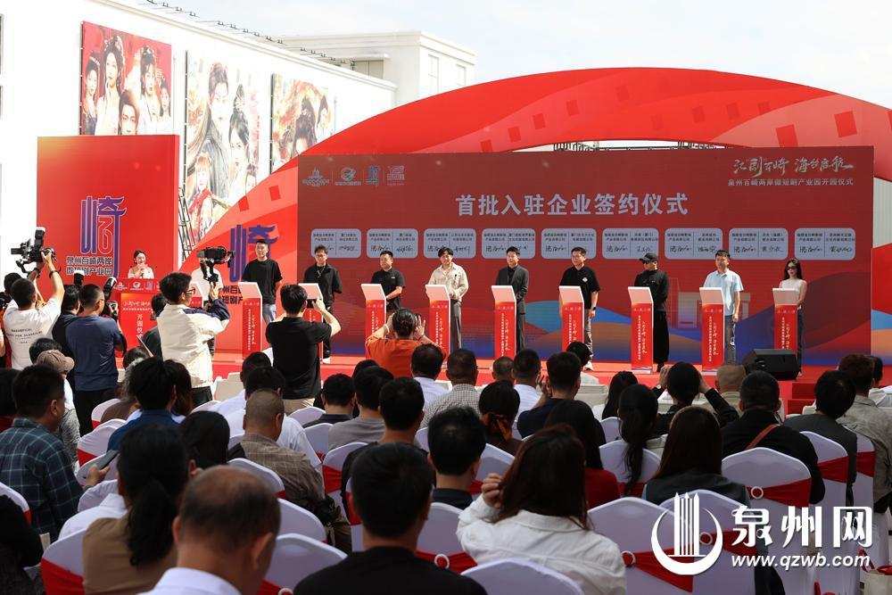 開園儀式現場,9家首批入駐的影視制作、MCN機構、技術服務企業代表集中簽約,涵蓋影視創作全產業鏈環節;50位省內創作骨干現場集結,2部微短劇項目同步啟動;泉州華光職業學院還向產業園授予“大學生實訓基地”牌匾,開啟校企協同育人新模式。在各級領導共同推桿下,泉州百崎兩岸微短劇產業園正式開園,標志著福建規模最大、配套最全的微短劇專業園區全面運營。