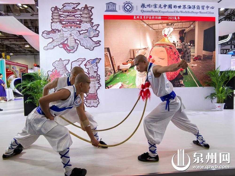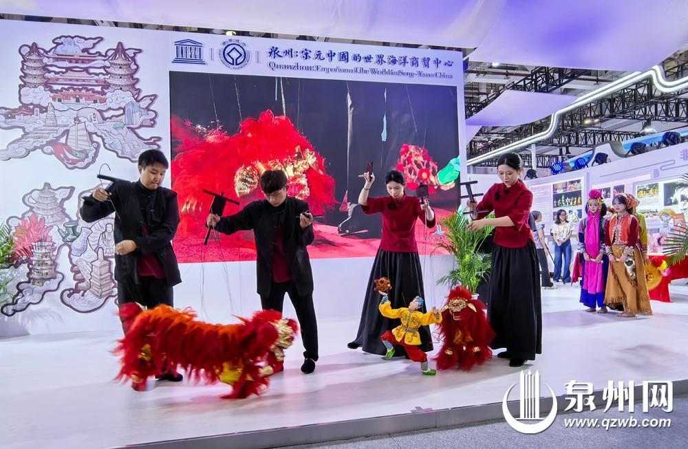“今年泉州主題館融合全市各地優(yōu)勢項目,著重呈現(xiàn)世遺泉州、戲窩泉州、國潮泉州和非遺泉州四大版塊,主題更為突出,同時做足泉州好禮,營造沉浸式體驗空間,讓每一位參觀者感受世遺泉州的整體風貌。”本屆文博會泉州參展組委會相關負責人說,泉州主題館不僅展品豐富,項目眾多,還進一步增加了互動體驗,通過動靜結合全面展示泉州非遺的魅力。泉州提線木偶戲、南音、惠女服飾、武術表演等項目輪番上演,還有簪花、茶道、香道等非遺項目體驗,贏得如潮好評。