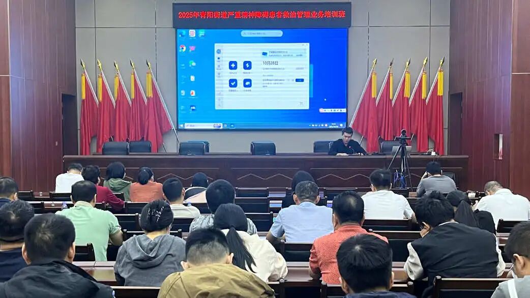 為進(jìn)一步提升各方塊對嚴(yán)重精神障礙患者救治管理綜合能力,強(qiáng)化部門協(xié)作聯(lián)動。10月28日上午,青陽街道開展2025年嚴(yán)重精神障礙患者救治管理業(yè)務(wù)培訓(xùn)班。綜治辦、衛(wèi)生服務(wù)中心、社區(qū)衛(wèi)生服務(wù)站精防人員、各社區(qū)治保主任、網(wǎng)格員、巡邏隊(duì)等相關(guān)人員參加會議。會議由街道綜治辦負(fù)責(zé)人許淞梁主持。