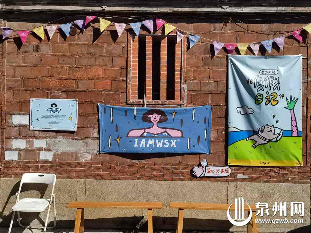 赤子空間門口的三五竹椅、縫紉店門口創意十足的“補衣貼”、五十弦藝術島明麗又暖心的“愛心分享座”……來到承天巷,這條被網友譽為泉州“最具文藝氣質的街巷”,生活的詩意悄然萌芽,書店、咖啡館、茶館與展覽空間林立,這份詩意與煙火相融的氣息,吸引了無數青年前來漫步打卡,感受生活與藝術交織的韻味。