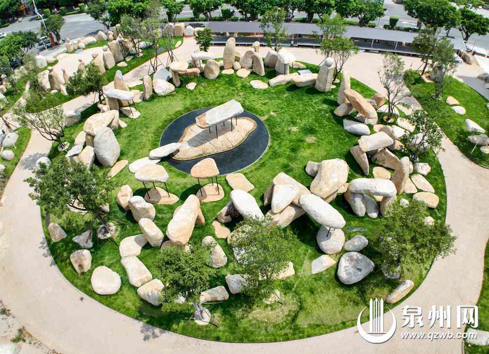 轉至車水馬龍的泉秀街與成洲路交叉口,另一處風格迥然的磐云石頭藝術公園將約200塊來自泉州深山的原生巨石“搬”進了都市中心。這些石頭數量多、塊頭大,每塊都保持著最原始的形態,或如春筍破土,或似拱門凌空,還有的結合鋼管堆疊成各種形狀,成就一幅極具沖擊力的大地藝術畫卷。它既是新晉的拍照打卡地,也為散步途中的城市視野注入鮮明的視覺沖擊。